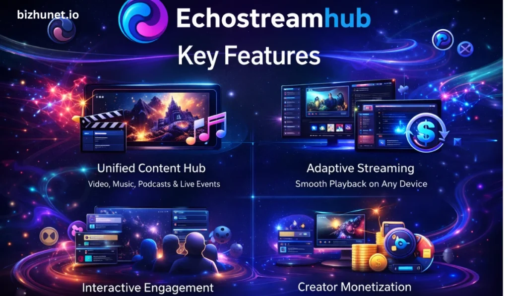 Echostreamhub is a digital streaming and engagement platform designed to host many types of online content in one place. At its heart, it helps users watch video, play audio, enjoy live events, engage with communities, and explore personalized content without using many different services.
