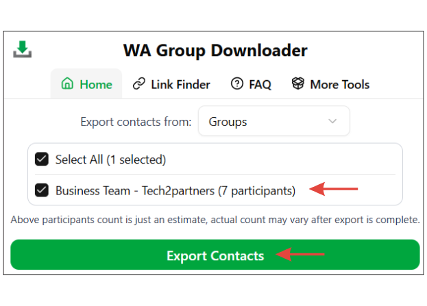 Skip copying numbers one by one export WhatsApp group contacts instantly.